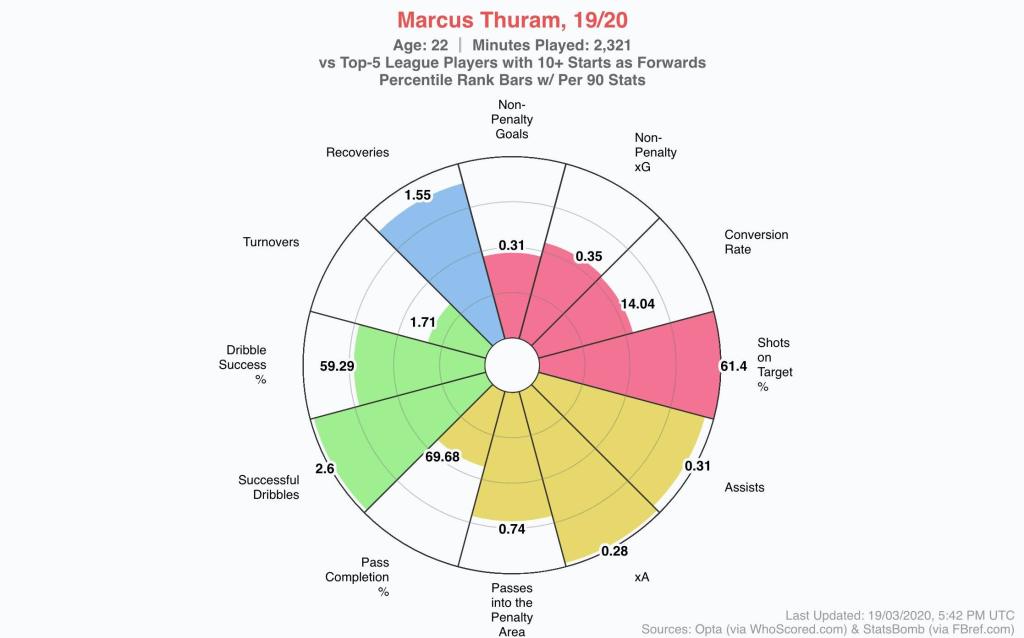 The main stats you should look at are key passes which should be above or equal to 3, combined Xa and Xg of 0.5, you can also look at the shot location and shots per 90. You have to look at the type of attack the player’s team is playing, like Marcus Thuram did not contribute a lot but was still promising because he was playing in a very bad team, who did not know to attack.